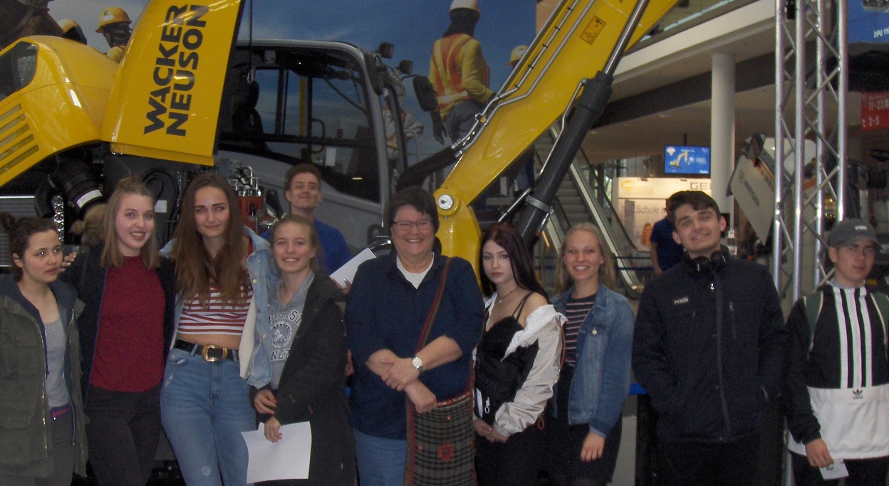 Danach erkundeten die Frenzelschüler auf eigene Faust die Messe. Sie konnten sich vom Selfie Tower aus über 20 Meter Höhe einen Überblick über das ganze Areal verschaffen. Oder sie bestaunten auf dem Freigelände die riesigen Baumaschinen und Kräne. Manche dieser Kolosse sind in der Lage 130 Tonnen zu heben. Dieses Gewicht entspricht einer 30-köpfige Elefantenherde. Interessant waren auch die Live-Vorführungen an den Messeständen.