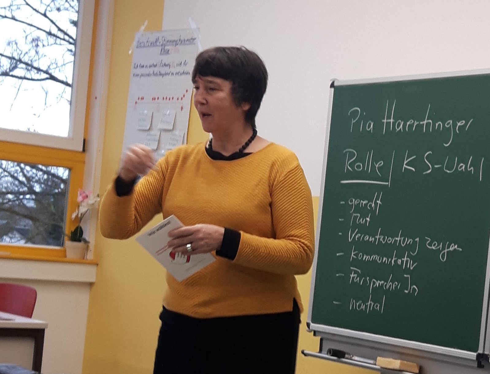 [28.01.20] Im Zuge des bayernweiten „Tags der freien Schulen“ besuchte die Augsburger Stadträtin Dr. Pia Haertinger (Grüne) die Frenzelschule. Die Kommunalpolitikerin aus dem Stadtteil Hochzoll hielt in der Z10b eine Sozialkundestunde mit dem Schwerpunkt „Mitbestimmungs- und Mitgestaltungsmöglichkeiten junger Menschen“. Zudem illustrierte sie die Möglichkeit und Merkmale einer soziokratischen, also offenen Klassensprecherwahl. Im Anschluss daran hatte die Klasse Gelegenheit, Fragen zu stellen. Nach Ende der Unterrichtsstunde führten die Schüler Selina Sieger und Gavin Köhler ein Interview mit Haertinger, bei dem es maßgeblich um die Relevanz des Schultyps Wirtschaftsschule und die Bedeutung von Bildung allgemein ging. Das Gespräch wurde aufgezeichnet und ist unter www.politikmachtschule2020.de abrufbar.